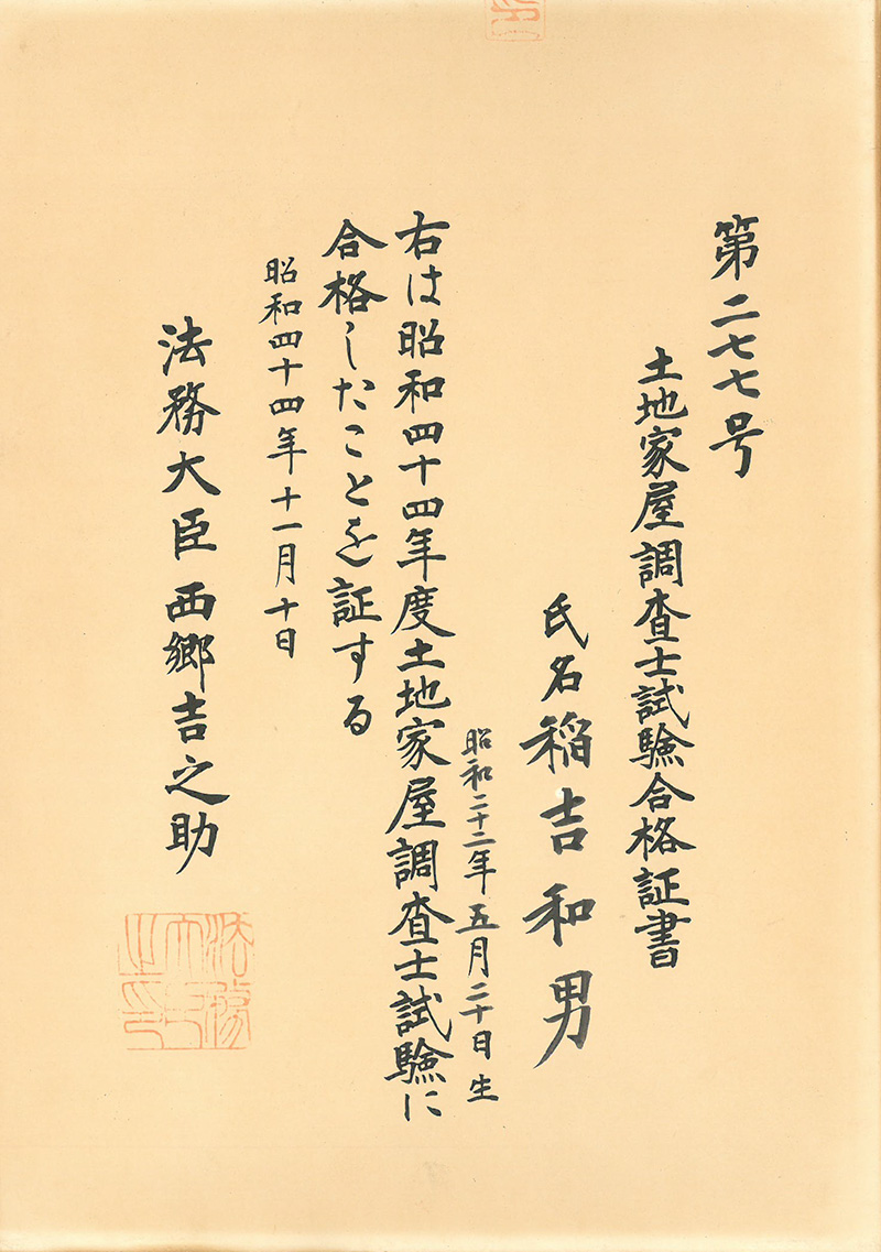 土地家屋調査士 稲吉和男 昭和48年 登録番号 1379号